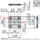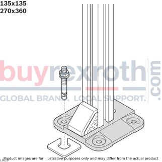 The Bosch Rexroth BASE PLATE (3842516175) is a robust and versatile component designed for constructing sturdy supports for partition walls and protective barriers. This base plate measures 135mm by 135mm, providing a solid foundation for various construction applications. It is specifically engineered to facilitate the anchoring process with floor dowels, ensuring a secure and stable installation.