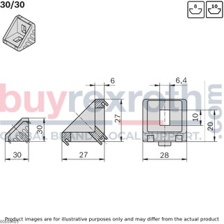 The Bosch Rexroth GUSSET 30X30 (3842523525) is a robust and versatile bracket designed to facilitate rapid and precise assembly within structural applications. This standard 30x30 bracket is distinguished by its centering lugs, which ensure accurate alignment and provide protection against rotation during installation. These lugs are designed for convenience, allowing them to be easily broken off when the bracket needs to be mounted on plates or oriented at right angles to the slot.