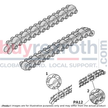 The Bosch Rexroth ACCUM.ROLLER CHAIN (3842536270) is a robust and efficient conveyor medium designed specifically for workpiece pallets. This accumulation roller chain is crafted from steel, ensuring durability and a long service life. It is an essential component for the self-assembly of conveyor units and is particularly compatible with ST 2/R and ST 2/R-H conveyor units provided by Bosch.