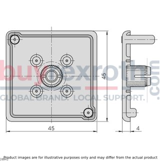 The Bosch Rexroth CAP COVER 45X45 D12.5 D18 ESD (3842548797) is a meticulously designed cover cap that serves the dual purpose of safety and aesthetics for open profile ends. This black cap, crafted from polypropylene (PP), is engineered to prevent injuries by covering exposed ends of profiles, ensuring a safer environment for users. It features an attractive design that aligns with the professional look of industrial applications while providing functionality.