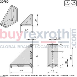 The Bosch Rexroth CAP COVER GUSSET 30X60 ESD (3842548849) is a specialized accessory designed for use with aluminum structural framing systems. This cover cap is crafted to fit brackets, specifically those with centering lugs that facilitate rapid and precise assembly while also offering protection against rotation. If required, the centering lugs can be removed easily for mounting on plates or for perpendicular alignment to the slot.