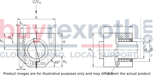 This particular model has a shaft diameter 'd' and is equipped with two seals for enhanced protection against dust and debris. It is delivered pre-greased, utilizing Dynalub for optimal initial lubrication, which contributes to its reduced radial clearance and reliable performance over time. The friction forces generated by the linear bushings are minimal when not under radial load, optimizing the efficiency of motion.
