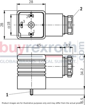 With its mating connector feature, the Bosch Rexroth PLUG-IN CONNECTOR ensures secure and efficient connections that are critical for the optimal performance of solenoid-operated valves. The product's durable construction and precise manufacturing standards reflect Bosch Rexroth's commitment to quality in providing essential components for industrial use.