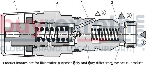 This product falls under the product family classification of pilot-operated pressure relief valves and is identified by its unique product group ID. The adjustment options available for setting system pressure include a sleeve with hexagon and protective cap, which allows users to easily modify the settings while providing protection against accidental adjustments.