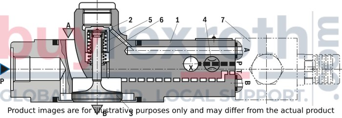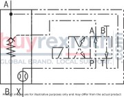 This particular model operates within a component series X with its maximum operating pressure reaching up to 315 bar and can handle maximum flow rates of up to 100 liters per minute. Its robust design ensures reliable performance in controlling fluid dynamics across various applications.