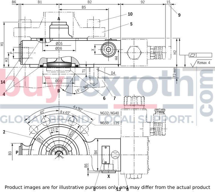 (NG32 … 100 and NG160) Component series 10 ... 19 (10 ... 19: unchanged installation and connection dimensions) |