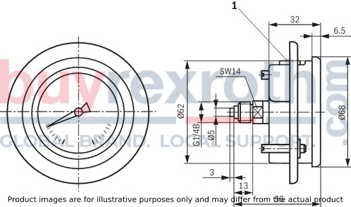 The Bosch Rexroth ABZMM 63-250BAR/MPA-U/V-G (R900771208) is a high-quality pressure gauge designed for measuring and displaying pressure within hydraulic systems. This instrument features a robust stainless steel housing and is filled with fluid to provide effective damping, ensuring accurate readings even in the presence of vibrations or pulsations. The pressure gauge is capable of displaying pressures in both bar and MPa units, with a maximum pressure capacity as indicated by its model code.