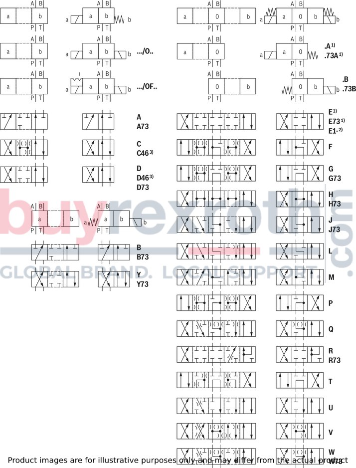 In the de-energized state, the control spool (3) is held in the middle or initial position by the return springs (4) (except version “O”).