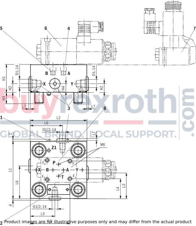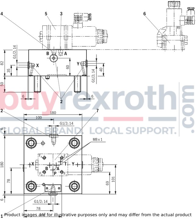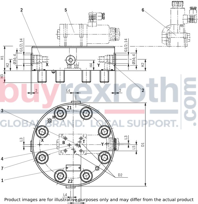 Porting pattern according to ISO 4401-05-04-0-05 (mounting thread for version "/12" see data sheet 08936) |