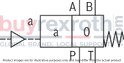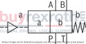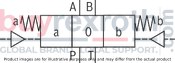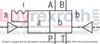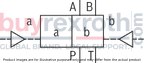 In its default state, the control spool is maintained in either the central or initial position by the return springs, except in the case of an impulse spool. The actuation elements enable movement to the desired spool position. Notably, this model can be equipped with a throttle insert in channel P to manage flow conditions that exceed the valve's performance limit during switching processes.