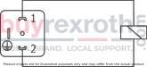 If the wet-pin electronic solenoid (2) is energized, the control spool (3) moves out of its rest position into the required end position. In this way, the required direction of flow according to the selected symbol is released.