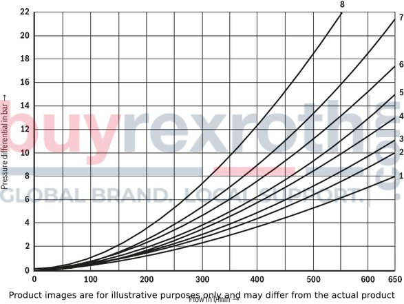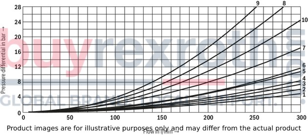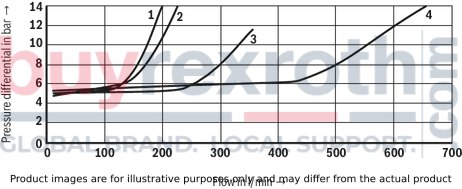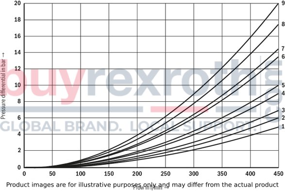 The pressure differential of the preload valve is to be added to the pressure differential of the main valve (see characteristic curves) to result in one total value.