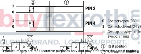 The springs (3.1) and (3.2) do not have a return function in this version. They hold the main control spool (2) in central position in the depressurized condition and with horizontal installation.