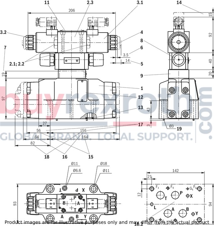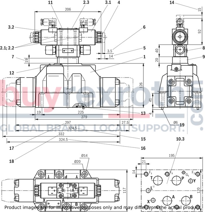 The pilot oil return is implemented externally - via channel Y - into the tank. In the subplate, port X is closed.