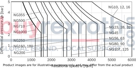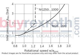 2) | Maximum speed (limiting speed) with increased inlet pressure pabs at suction port S, see the following diagram. |