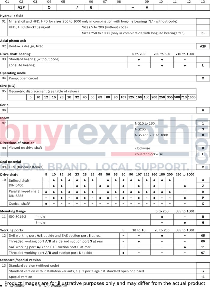 Robust pump with long service life Very high total efficiency High power density Large variety of available nominal sizes allows exact adjustment to the application Optional with long-life bearings for the nominal sizes 250 to 1000 Bent-axis design
