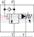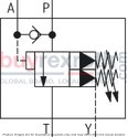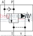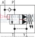 Equipped with a main housing, pilot control valve, main spool insert, and check valve, this model seamlessly transitions pump flow from P to B and P to T as necessary. The pilot-operated design utilizes a control spool that activates upon reaching a predetermined cutoff pressure set by an adjustment spindle in the screw-in cartridge valve. When this pressure is met, the connection from the spring-loaded side of the main spool to the return line opens either internally or externally depending on the configuration.
