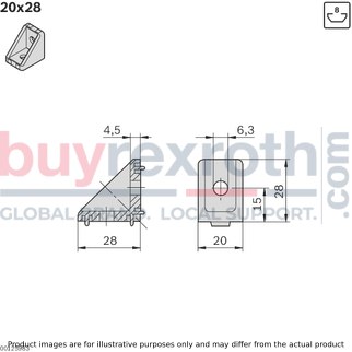 In terms of construction, there is no need for profile finishing, which simplifies the installation process and reduces additional labor or material costs associated with preparing components for assembly. The Bosch Rexroth GUSSET 20X28 is designed to work seamlessly with other compatible profiles and components from Bosch's modular structural assembly systems.