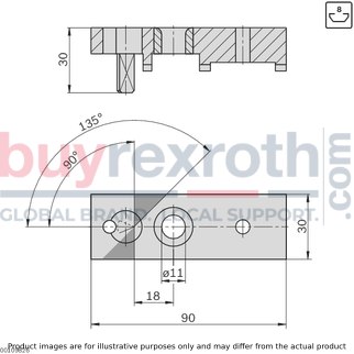 The Bosch Rexroth DRILL JIG N8 D11 (3842516729) is a specialized tool designed for creating precise fastening holes with a diameter of 11mm in miter cut profiles. This drilling jig is particularly crafted to work with groove 8 profiles, ensuring compatibility and ease of use for those specific applications. The tool's primary function is to facilitate the drilling process for the installation of bendable quick connectors, which are essential components in various construction and assembly tasks.