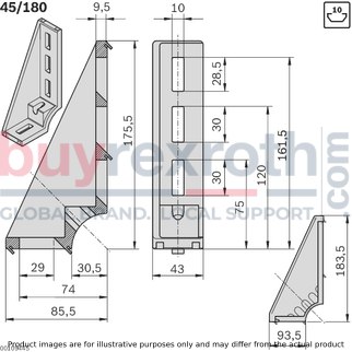 The Bosch Rexroth FOUNDATION BRACKET 45X180 (3842523583) is a robust and versatile bracket designed to facilitate rapid and precise assembly within various structural configurations. This standard 45x180 bracket features unique centering lugs that ensure a secure connection with protection against rotational movement, making it ideal for creating stable joints in construction projects. For instances where the bracket needs to be mounted on plates or at angles perpendicular to the slot, these centering lugs can be conveniently broken off.