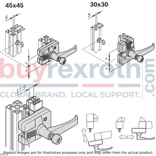 The Bosch Rexroth DOOR LOCK (3842525822) is a versatile and secure locking solution designed for both swing and sliding doors. This lock is characterized by its uniform locking system, which means that each lock variant operates with the same key, providing convenience for users who need to secure multiple doors within the same facility. It is compatible with profiles measuring 45x45 and 30x30, ensuring a broad range of applications. The Bosch Rexroth DOOR LOCK can be opened to both the right and left, offering flexibility in installation and use. Customers have the option to choose between a version that comes with a door handle or a two-way lock variant, catering to different preferences and requirements. The design of this door lock emphasizes ease of use while maintaining a high level of security. This product is particularly suited for those seeking a coherent security approach across multiple access points. Its uniform locking feature simplifies key management without compromising on safety. Whether used in commercial or industrial settings, the Bosch DOOR LOCK (3842525822) offers reliability and consistency in securing premises.