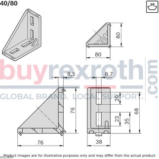 Furthermore, this product eliminates the need for profile finishing, streamlining the installation process and reducing overall project time. The combination of functionality and design makes the Bosch GUSSET 40X80 bracket an ideal choice for constructing frames, supports, or any other structures that require reliable and aesthetically pleasing joining solutions. Its application is broad-ranging, suitable for use in constructing workstations, machine guards, or any other modular assemblies where precision and quality are paramount.
