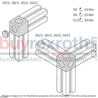 The Bosch Rexroth CUBIC JOINT 40/2 (3842529010) is a robust and versatile connector designed for the torsion-resistant corner connection of profiles with equal cross-sections. This cubic joint is specifically engineered to simplify the assembly process of various structures without the need for profile finishing, allowing for a more efficient and streamlined construction. It is particularly suitable for creating rigid frameworks in modular constructions, where stability and precision are paramount.