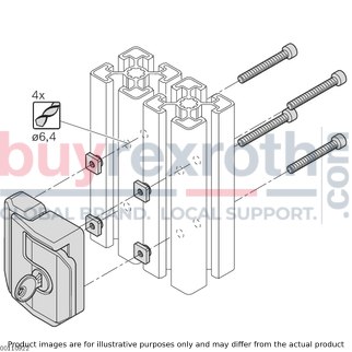 Installation requires specific profile finishing with drilling of hole D6.4, which ensures a precise fit and seamless integration into door systems. The Bosch Rexroth DOOR LOCK (3842530353) represents a reliable choice for those seeking a dependable and user-friendly locking mechanism for their swing doors.