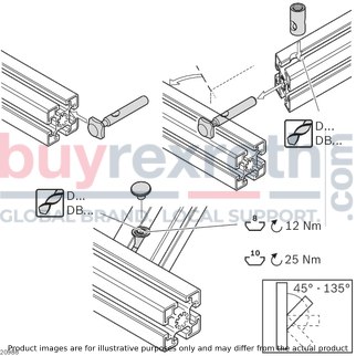 The Bosch Rexroth QUICK CONNECTOR 10-S/N (3842535635) is a versatile and robust component designed for the modular assembly of aluminum structural profiles. This particular quick connector is engineered to facilitate end-to-slot connections, allowing two profiles to be joined at any angle, which is particularly useful for creating framework constructions that require a high degree of customization and flexibility.