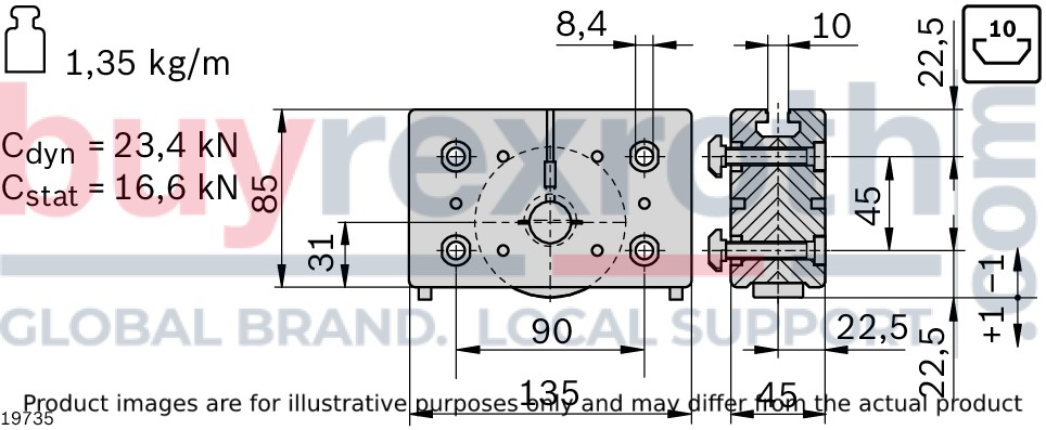 The Bosch Rexroth LF20 supporting bearing belt is tailored to support brackets efficiently and effectively by offering a reliable solution for handling off-center loads. Its construction embodies Bosch's commitment to quality and reliability, making it a suitable component in various applications where guide rail support is critical. The model's features are designed with user convenience in mind, aiming at providing a seamless experience from installation through long-term operation.