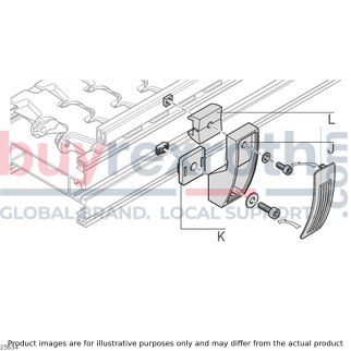 The Bosch Rexroth TENSIONING HEAD (3842536295) is a robust component designed to provide secure clamping and tensioning solutions. This product features a set of clamping heads, holders for lateral guides with a fixed installation height, and a fixed guide width, ensuring stability and precision in various applications. The model includes a holder labeled as 'J', which is designed to be fixed in place, providing a solid foundation for the sectional rails it supports.