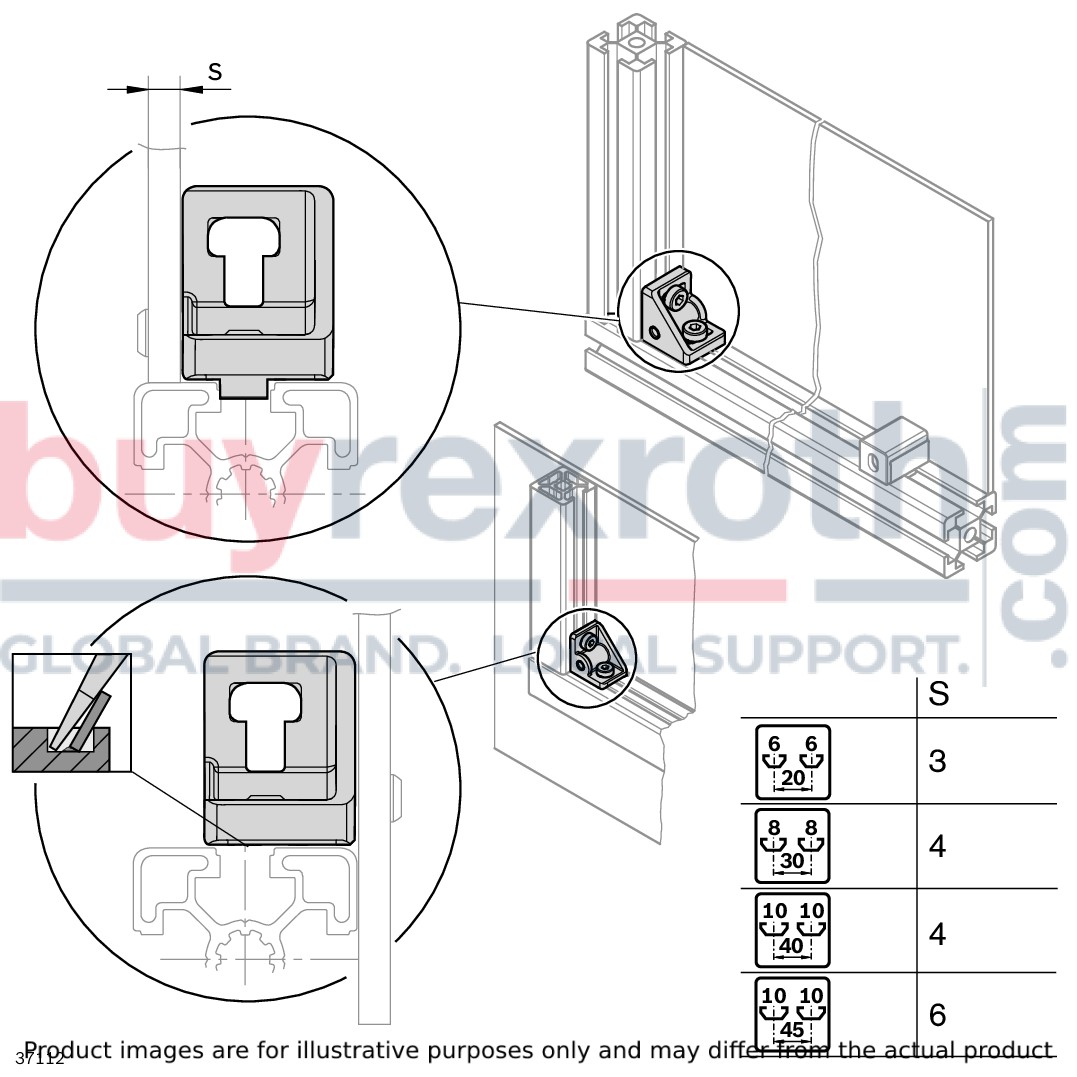 The Bosch Rexroth GUSSET S 40 45 (3842536491) is a versatile and robust bracket designed for secure mounting of surface elements within closed frame constructions. This bracket features an innovative design that allows for virtually gap-free installation, ensuring a clean and professional finish. With the ability to mount the surface element in various positions, users can choose to have it flush with the profile edge or positioned in front of the profile by simply breaking off the centering lug.
