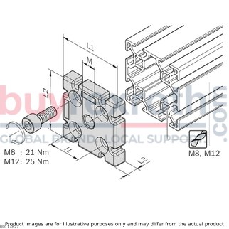 The Bosch Rexroth PLATE 40X80 M12 (3842536562) is a versatile and robust component designed for use in constructing sturdy frames and structures using aluminum profiles. This plate is specifically engineered for fastening leveling feet in profiles that lack a central hole, thereby enhancing the stability and adjustability of the overall assembly. It can also serve as an efficient solution when used as an end connector or T-connector within a framing system.