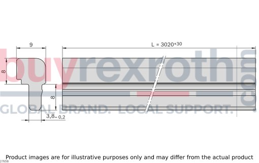 In summary, the Bosch GUIDE PROFILE FP 2/H-ST 24X3000 (3842537890) is an essential component for those looking to enhance or maintain the performance of their conveyor systems. With its durable construction and compatibility with specific section profiles, it provides a reliable solution for guiding workpiece pallets across various industrial applications.