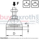 With its durable PUR material construction, the product promises longevity and resistance to wear. The black-colored damping plate seamlessly integrates with various profiles due to its compatibility with profile slots. The design specifications include a force F rating and diameter D measurement that accommodate specific requirements, making this product suitable for a wide range of industrial applications. Its thoughtful design exemplifies Bosch Rexroth's commitment to providing high-quality components that meet the demanding needs of modern industry without compromising on flexibility or performance.