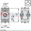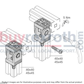 Capable of facilitating both movable and rigid profile connections at any angle, the JOINT 45X45 SILVER offers a wide swivel range and features markings in 10° increments for precise alignment. The clamping force can be conveniently adjusted using a clamping lever (not included), supporting up to 25 Nm of torque. This feature ensures stable yet flexible positioning ideal for a variety of configurations.