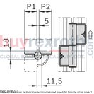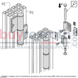 The HINGE 45-60/45-60 is part of Bosch Rexroth's product group ID and comes in a packaging unit that includes all necessary fastening materials (FS) for installation, along with two cover caps. The hinge itself is made from diecast zinc, ensuring strength and longevity even under substantial load. The included cover caps are made from black PA (polyamide), which provides a neat finish to the installed hinge. The fastening material supplied with the hinge is steel that has been galvanized to resist corrosion.