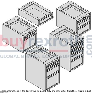 Manufactured from high-quality sheet steel, the DRAWER UNIT 360_3 ESD is robust and designed for long-term use. It comes in a dusty gray color (RAL unspecified), which offers a professional look that fits seamlessly into industrial settings. The product's scope of delivery includes a drilling template and fastening material for easy installation, as well as keys for the locking mechanism. Whether used in manufacturing facilities, laboratories, or electronic assembly areas, this Bosch Rexroth drawer cabinet provides an efficient storage solution while protecting against electrostatic discharge.