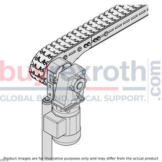 Designed for versatility, this unit supports all track widths and chain types within certain limits of permissible tensile force. It can function as both a return unit with a maximum force of Fmax N and as a head drive without a chain bag supporting the same maximum force. Maintenance intervals may be shortened due to chain elongation considerations.