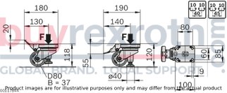The Bosch Rexroth LIFTING WHEEL D80 (3842547890) is an innovative component designed to enhance mobility and stability in various applications. This lifting wheel features the IdealStop mechanism, which ensures that the locking lever remains stationary and does not swivel with the caster, providing a fixed position on the frame. The steerable lifting wheel effortlessly transforms into a solid base by simply engaging the stop lever, ensuring stability when needed. With its screw-on plate, this lifting wheel can be easily mounted, catering to user convenience and efficiency. The product belongs to Productgroup ID and is sold in specific packaging units. It is engineered to withstand a specified force (F), and its total height has been optimized for seamless integration into systems requiring such dimensions. Constructed from high-quality materials, the wheel itself is made of PA 6 in natural white, while the housing boasts galvanized steel for durability and longevity. Additionally, the base plate is rubberized to provide extra grip and reduce slippage. The color of this model is gray, allowing it to blend seamlessly with various design aesthetics. For installation, specific required accessories include Mx screws ISO, washers DIN EN, lock washers FSt for secure attachment to the screw-on plate; Mx T-bolts; M flange nuts; and either an M or S central bolt for fastening the screw-on plate firmly to a profile frame. The Bosch Rexroth LIFTING WHEEL D80 (3842547890) stands out as a reliable solution for applications demanding both mobility and stability with easy-to-use features that ensure operational efficiency and safety.