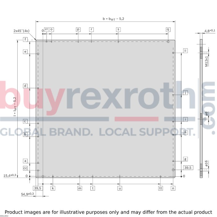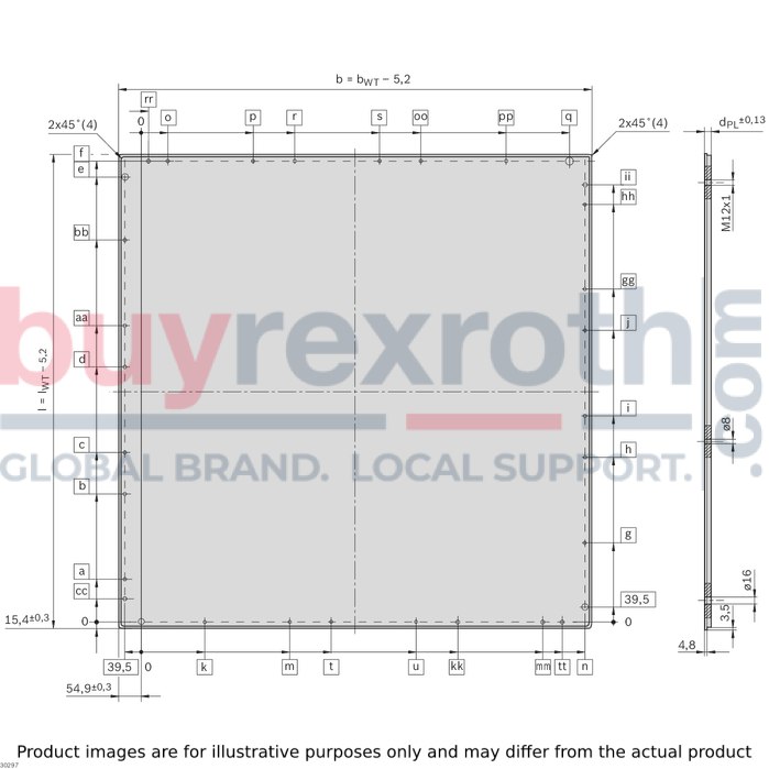 The Bosch Rexroth CARRYING PLATE 1200X1200X127 ALU (3842548687) is a robust and versatile component designed for the construction of workpiece pallets within material handling and automation systems. This aluminum carrying plate is engineered to facilitate self-assembly, offering a completely drilled surface that is ready for immediate assembly, ensuring a streamlined setup process. The plate boasts dimensions of 1200 mm by 1200 mm with a thickness of 12.7 mm, providing a solid base for product support.