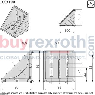 The Bosch Rexroth CAP COVER GUSSET 100X100 GREY (3842548874) is a specialized accessory designed to complement and enhance the functionality of structural aluminum profiles. This cover cap is specifically tailored to fit brackets, providing both aesthetic and practical benefits. The color of the cap is signal gray, conforming to the RAL color standard, which ensures consistency in appearance when used in various applications.