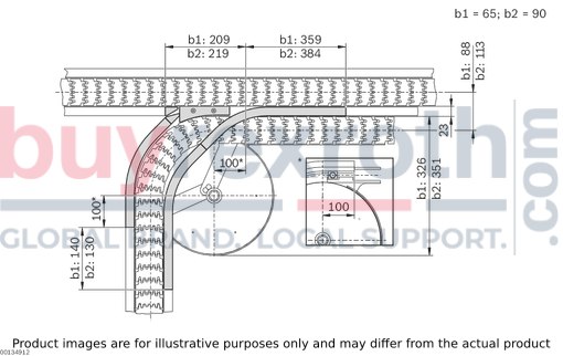 The Bosch Rexroth JUNCTION ASSEMBLY 65+ 90° L (3842551137) is a comprehensive solution designed to seamlessly connect various curving conveyor sections. This complete assembly kit, which includes fastening parts as shown, is tailored for the left junction and can be installed on existing sections or curve wheels. Its primary function is to facilitate smooth transitions over section gaps without the risk of tipping, ensuring that workpiece pallets are transferred securely and efficiently.