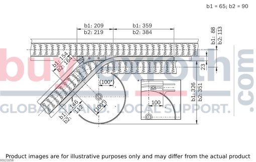 The JUNCTION ASSEMBLY 65+ 90° L boasts a robust construction with a sliding surface support made from black PA (polyamide), known for its strength and durability. The product group ID and weight specifications are indicative of its compatibility with the corresponding conveyor systems. With this assembly kit, users can expect an improvement in their material handling processes, particularly in applications where conveyor paths diverge or merge.
