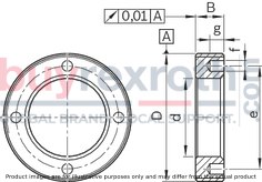 The Bosch Rexroth THREADED RING (R150766728) is a meticulously designed component essential for securing angular contact thrust ball bearings LGN and cylindrical single nuts ZEMES in ball screw assemblies. It is part of the product group ID and is specifically tailored for nominal size GWR 95X2. The threaded ring boasts a smooth outer shell which not only ensures that no parts protrude but also facilitates easy mounting of the nut. Its effective wiping sealing capability enhances the performance by safeguarding against contaminants, thereby extending the life of the assembly.