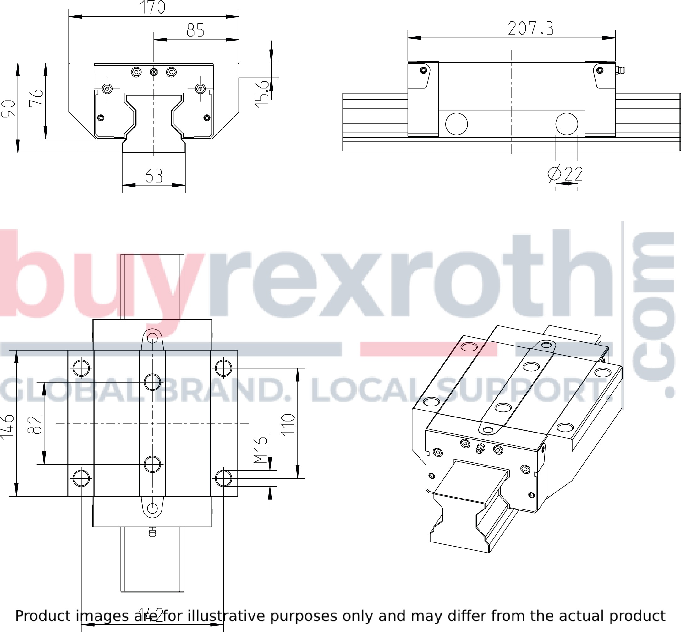 The Bosch Rexroth RWD-065-FNS-C3-P-2 is capable of compensating for misalignments without self-alignment and operates within a permissible ambient temperature range of -10°C to +100°C. Its design eliminates the need for special installations or environmental considerations, making it suitable for a wide array of applications that demand high precision linear guidance systems.