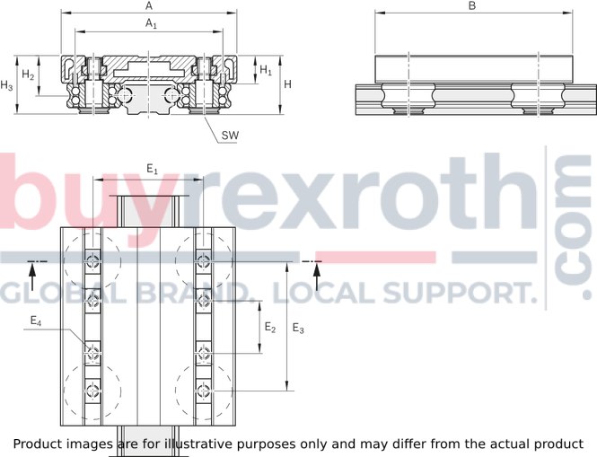 The Bosch Rexroth LR-WAGEN PROFIL AL LWA-042-SNS-C1-E-0 (R190714200) is a high-quality cam roller runner block designed for precision linear motion applications. This flat profile runner block is part of the size E profiled rail systems and is notable for its slimline width, standard length, and height, making it suitable for applications where space is limited. The body of the runner block is constructed from aluminum, offering a lightweight yet durable solution with a standard load carrying capacity. This model features an economic accuracy class E and comes without preservation or initial lubrication, allowing users to customize these aspects to their specific application needs. It also lacks attachment elements on both left and right front reference edges as well as a lube connection, emphasizing its standard version classification. The runner block has been set to zero clearance before delivery to ensure optimal performance upon installation. While wiper and lubrication units are not included, they are available as accessories for those who require them. The product's dynamic load capacities in both z-direction (Cz) and y-direction (Cy), along with its static load capacities in these directions, make it versatile for various dynamic applications. It operates effectively within a temperature range of -10°C to +100°C and can handle maximum static loads due to resulting force in the y-direction (Fy max), considering the permissible lateral force of the guide rail. Additionally, it boasts impressive torsional moment capabilities around all axes: x (Mx max), y (My max), and z (Mz max). The Bosch Rexroth LR-WAGEN PROFIL AL LWA-042-SNS-C1-E-0 runner block is self-aligning to compensate for any misalignments during operation but does not include self-alignment features. It supports a maximum permissible linear speed (vmax) which should be observed under average load conditions. Overall, this product offers robust performance for handling and automation technology needs within the specified operational parameters. Its dimensions include an overall length that accommodates size E profiled rail systems and a weight that ensures ease of handling without compromising on strength or functionality.