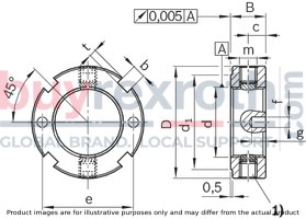 Weighing in at a mass (m) of only grams, this slotted round nut does not add significant weight to the assembly, helping to maintain efficiency in operation. Despite its lightweight nature, it can withstand an axial operating load (F Lax), demonstrating its capability to perform under pressure while contributing to the overall rigidity and precision of the ball screw system.