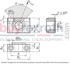 The EMC40/50 model is crafted with precision engineering and is known for its durability and reliability under varying operational conditions. It plays a critical role in the performance of electromechanical cylinders by allowing for smooth pivoting motion and reducing friction between moving parts, which is essential for maintaining efficiency and prolonging the lifespan of the machinery it supports.