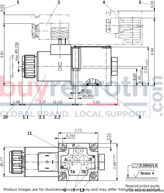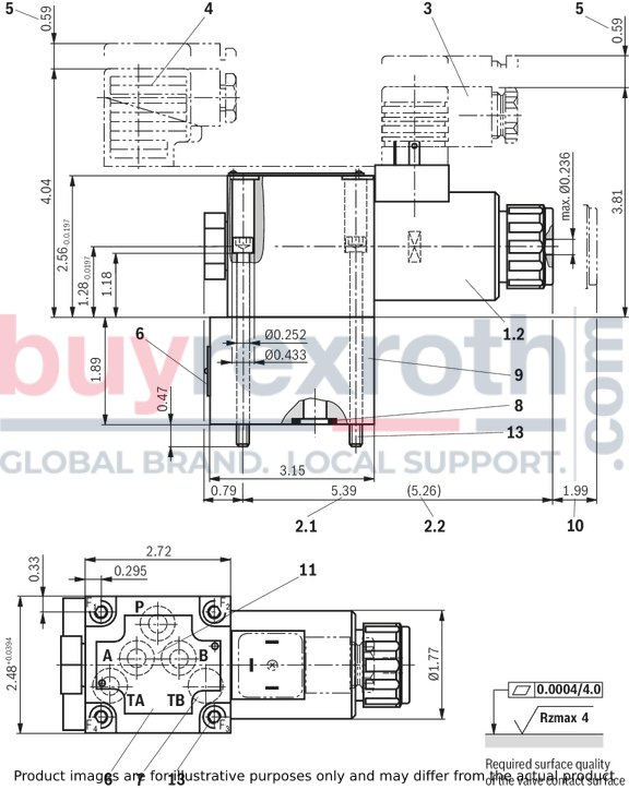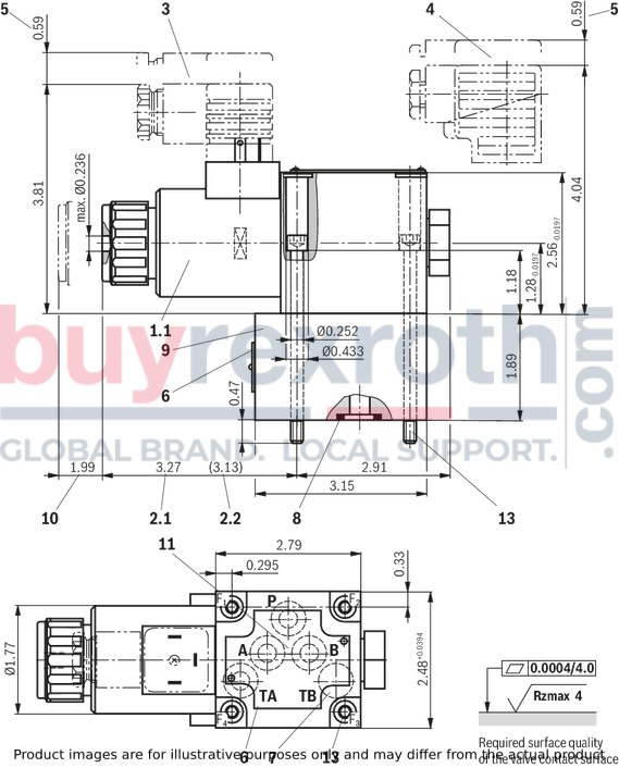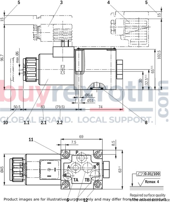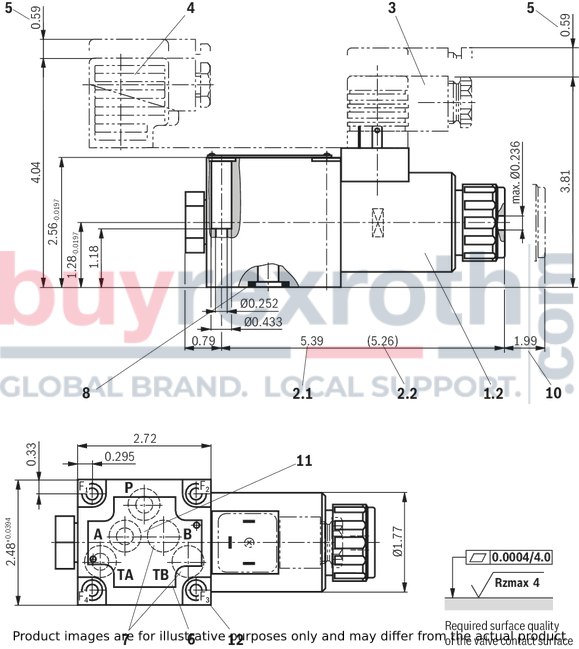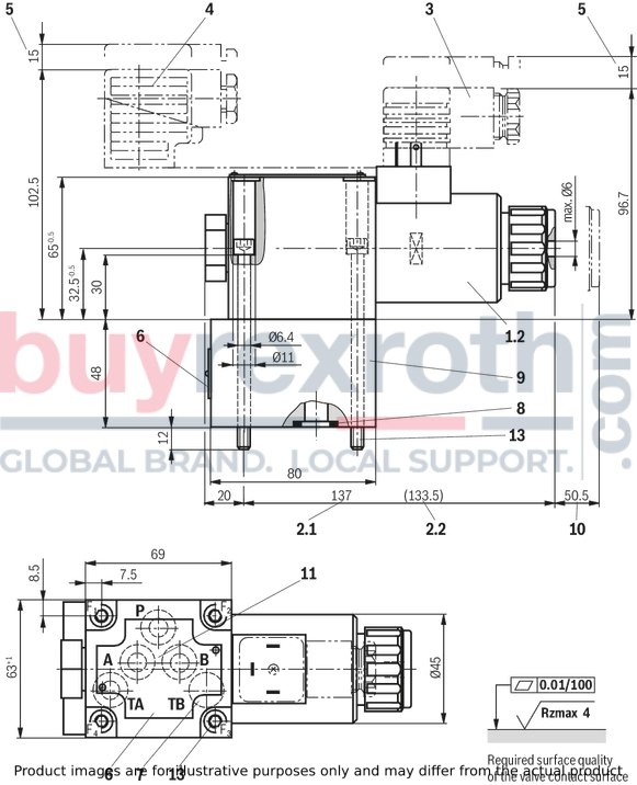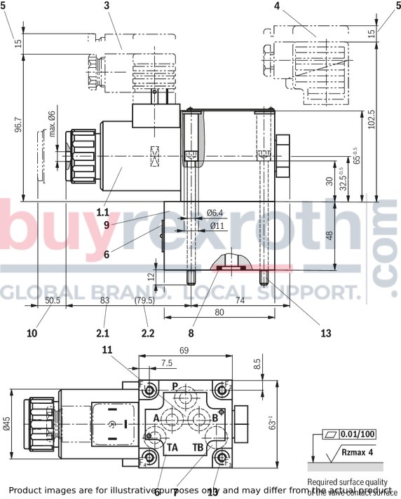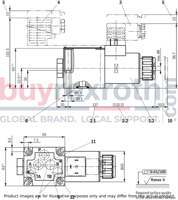 The ports P, A, B and T are clearly specified according to their tasks. They must not be arbitrarily exchanged or closed! Port T must always be connected. Observe the pressure level and pressure distribution! The flow is only admissible in the direction of arrow!Mating connectors for valves with connector “K4”, without circuitry, standard